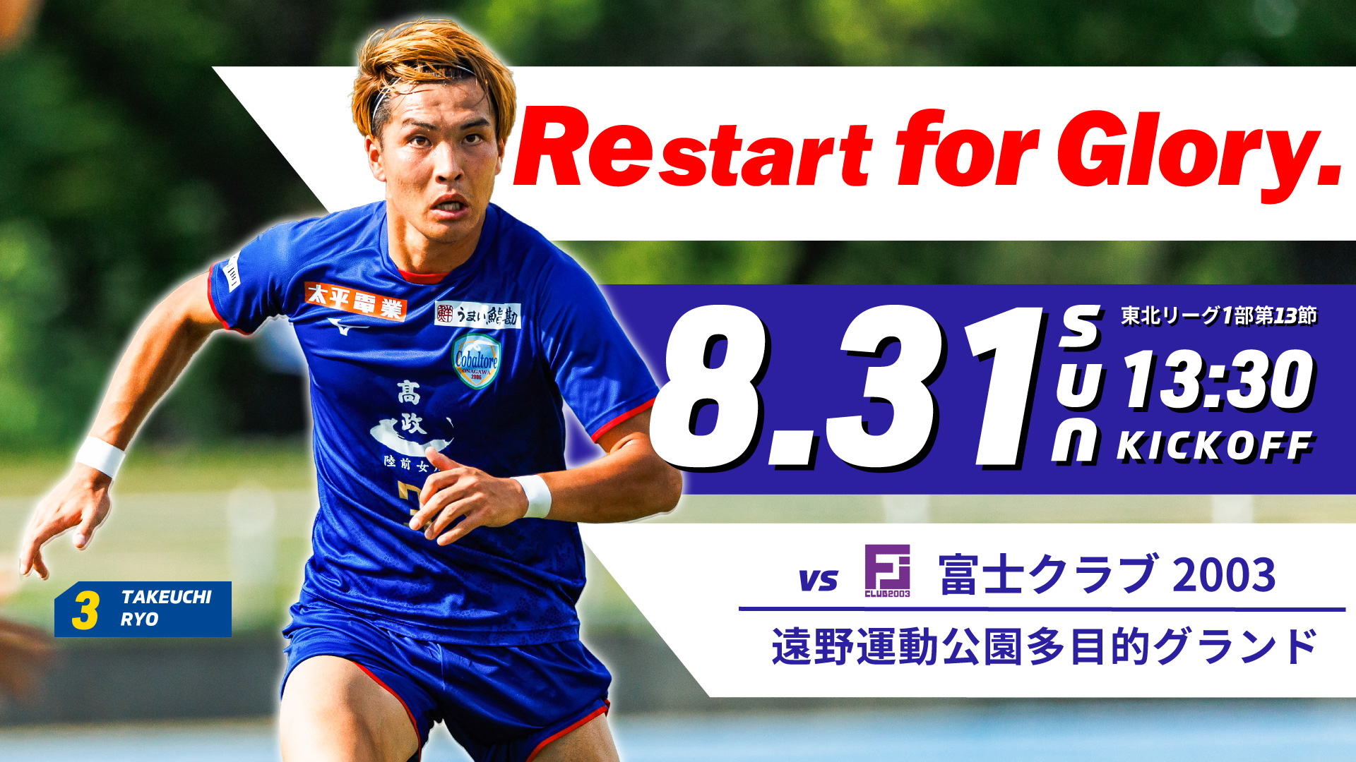 コバルトーレ女川は8月31日、2025年度東北社会人サッカーリーグ1部第13節で富士クラブ2003と遠野運動公園多目的グランドで対戦します。